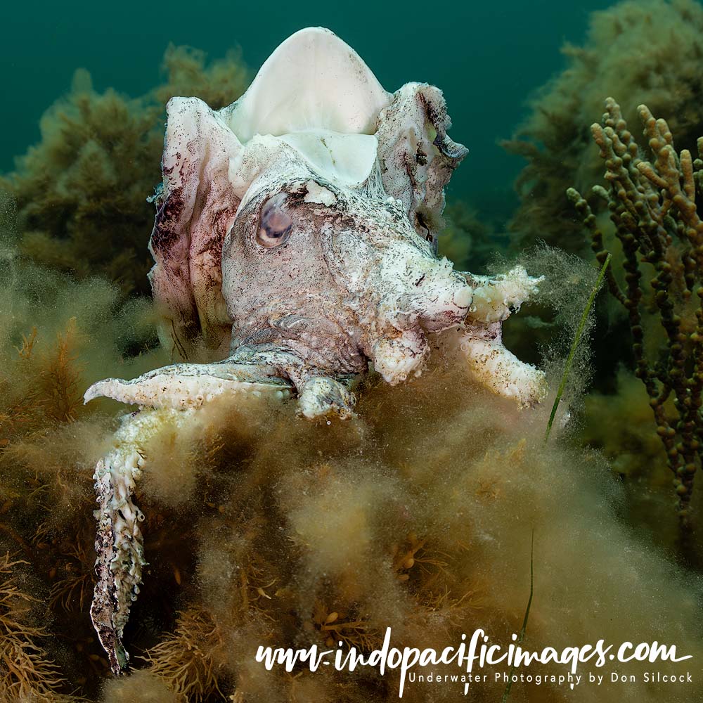 Probably the single most striking feature of Sepia apama is its sheer size. Adult males can reach a mantle length of up to 50cm and a total length of 1m, with its outstretched tentacles. Fully grown they weigh in at around 10kg.