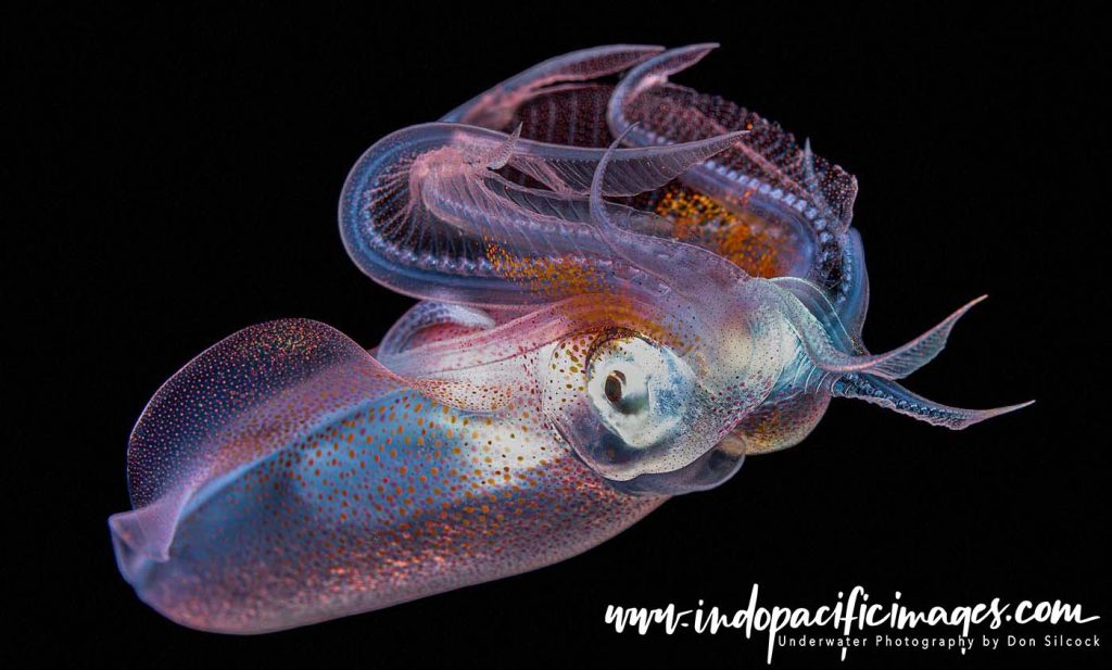 What divers witness on a blackwater dive is driven by the diel vertical migration, a nightly movement of marine life from the depths toward the surface. Larval fish, juvenile squid, jellyfish, crustaceans, and other pelagic organisms rise under cover of darkness to feed.