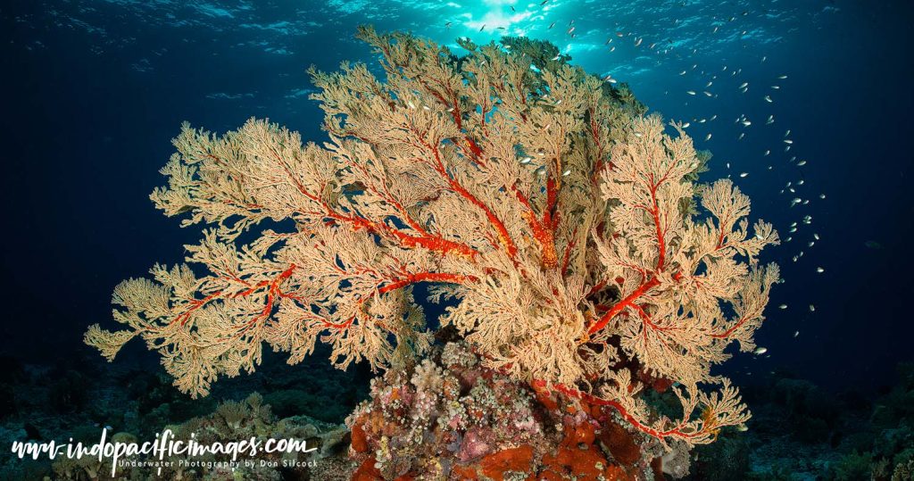 Then head down to about 15m where the margin ends, and the reef slope begins its descent into the depths of the Sulu Sea. Arranged to perfection along the slope are rows of huge gorgonian fans that stretch out into the current and feed on the passing nutrients. Each one a mini ecosystem of its own with permanent residents like sea stars, brittle stars, ghost gobies, pygmy seahorses and the pygmy’s nemesis the long-nosed hawkfish.